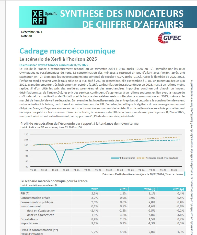 Le Gifec collabore avec l’Institut d’études XERFI pour créer des notes de conjoncture efficaces et représentatives du marché dans lequel nos membres évoluent.